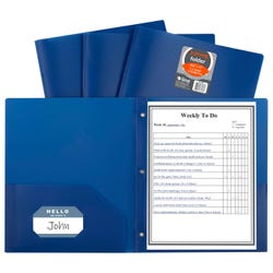 C-Line 2-Pocket Poly Folder, 3 Hole Punched, Blue, Pack of 25