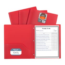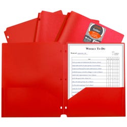 C-Line 2-Pocket Poly Folder, 3 Hole Punched, Red, Pack of 25