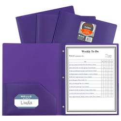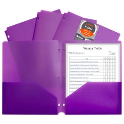 C-Line 2-Pocket Poly Folder, 3 Hole Punched, Purple, Pack of 25