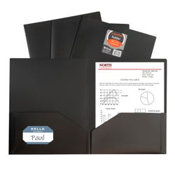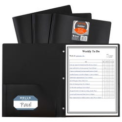 C-Line 2-Pocket Poly Folder, 3 Hole Punched, Black, Pack of 25