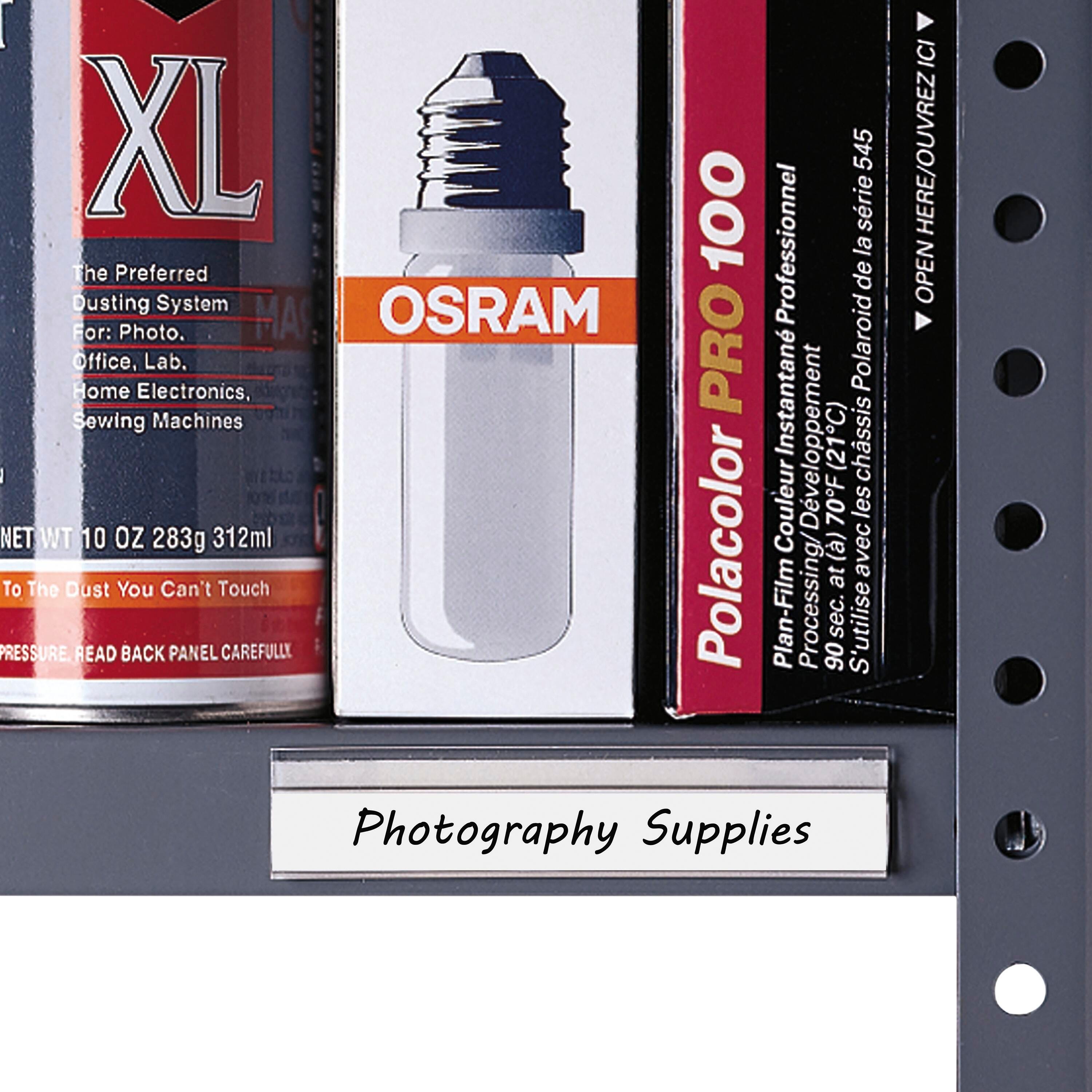 Create an organized workspace with easy-to-use shelf labeling strips.