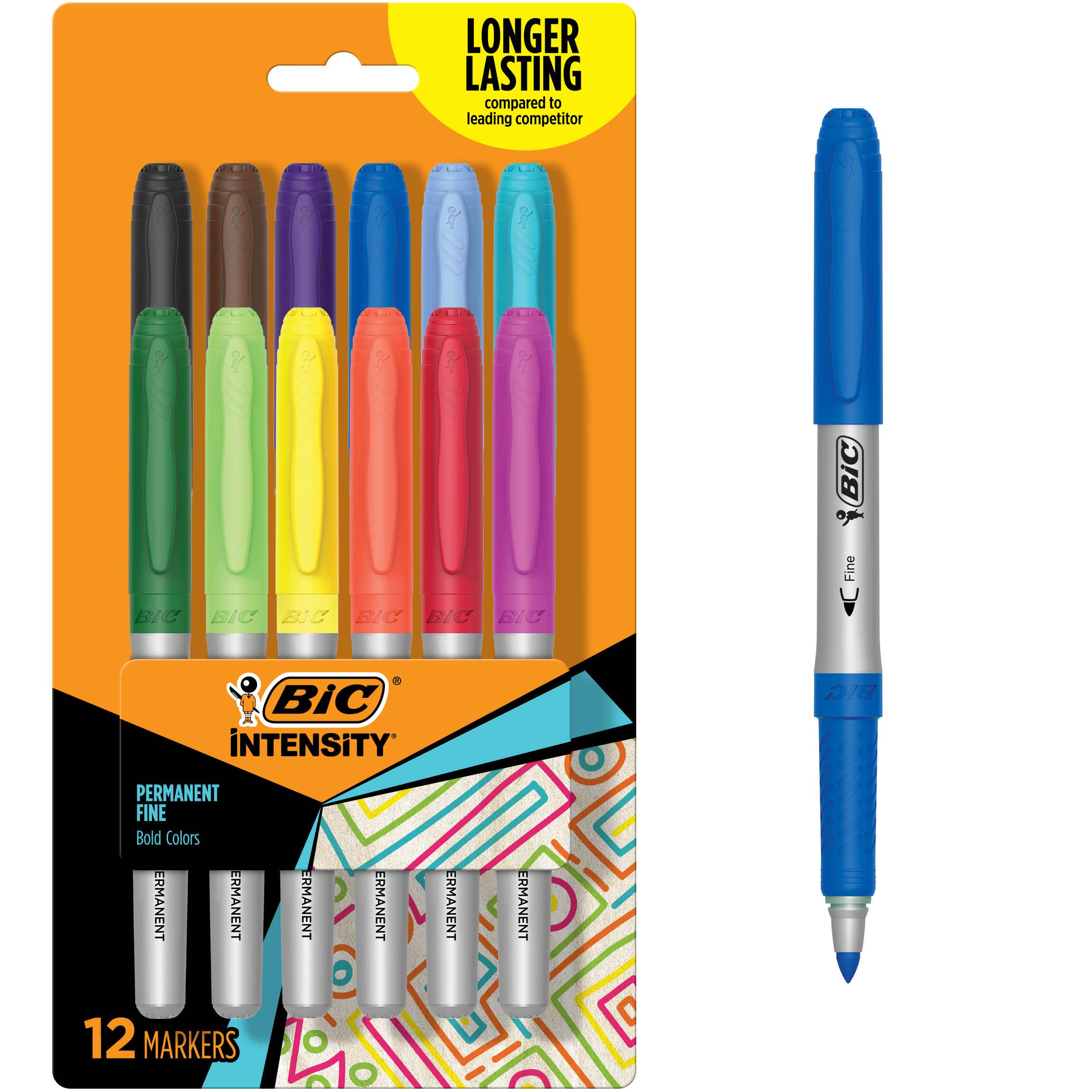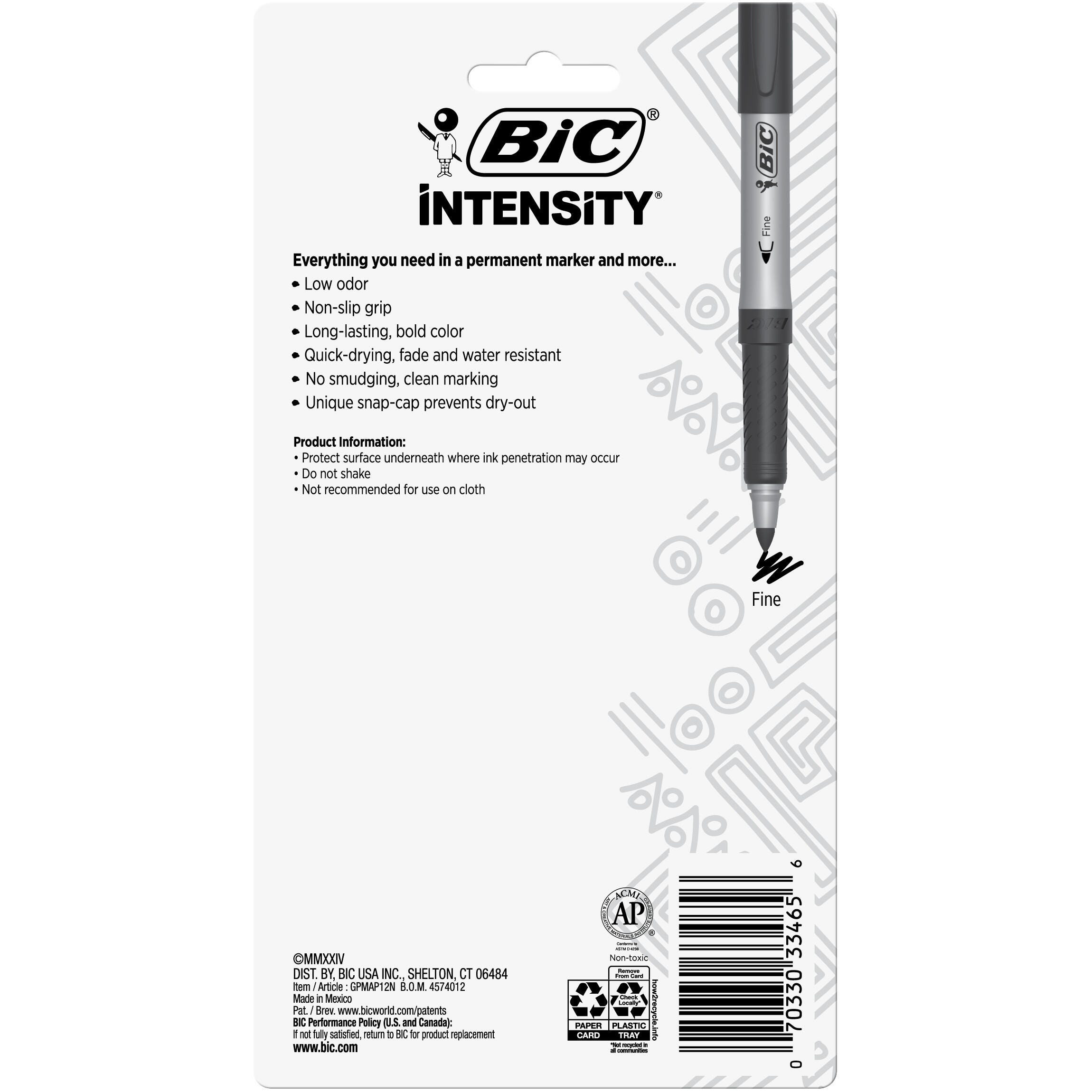 BIC Intensity Permanent Markers, Fine Tip, Assorted Fashion Colors, Set of 12