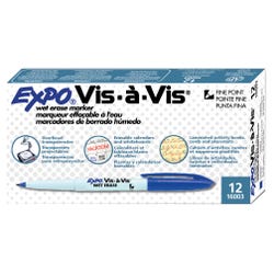 EXPO Vis-A-Vis Wet Erase Markers, Fine Tip, Blue, Pack of 12