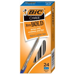 BIC Cristal Xtra Bold Ballpoint Pens, 1.6mm, Bold Point, Blue, Pack of 24