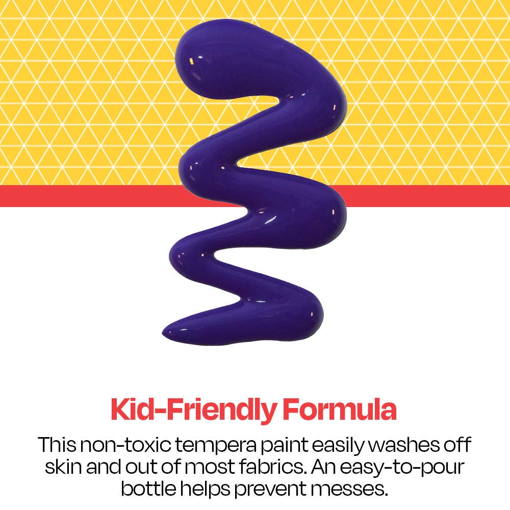 Features Formulated to flow smoothly from brush to canvas Water-based paint and easy to clean up Washes out of most fabrics with soap and cold water Dried tempera paint won't chip, flake, or crack This washable tempera paint comes in a value 1 gallon bottle Includes purple tempera paint (other colors sold separately) AP non-toxic
