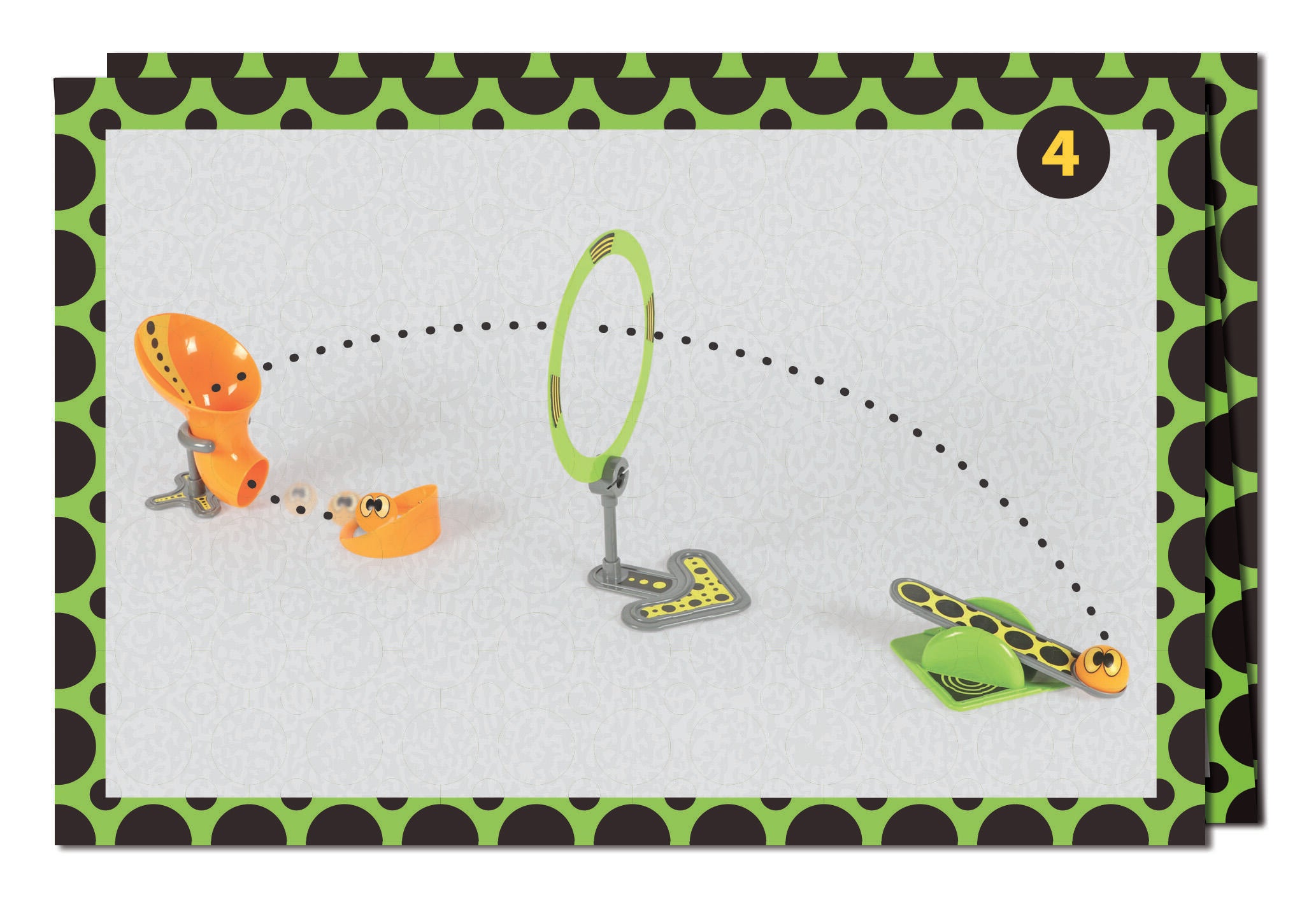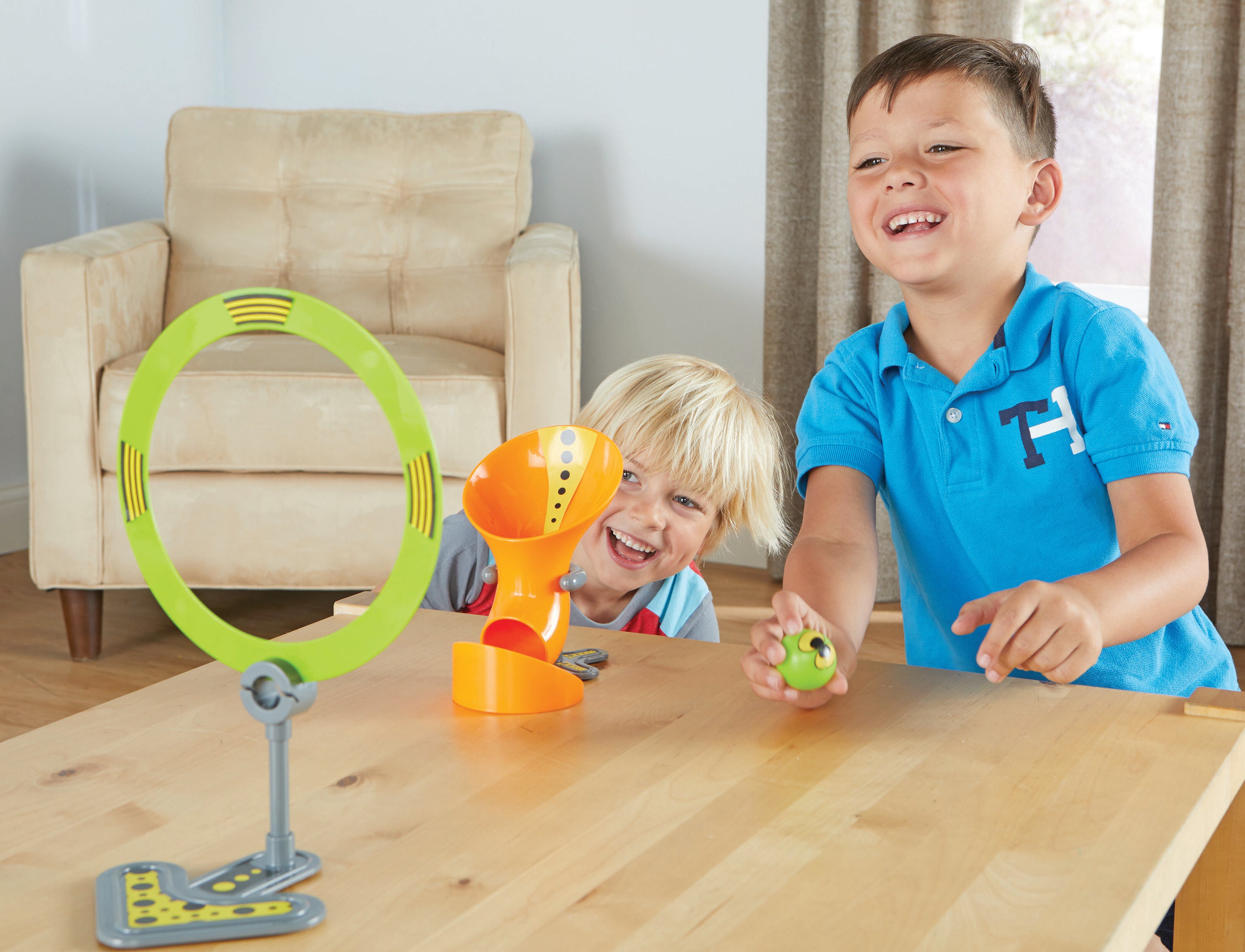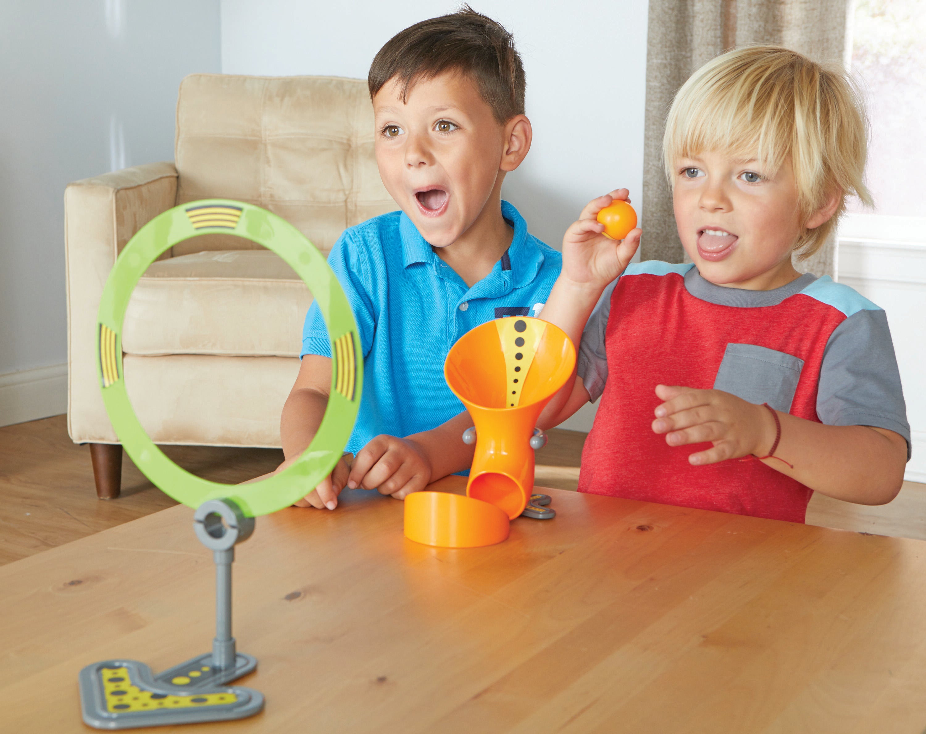 Encourage your early learners through a trial and error approach to problem solving through game-like challenges. The catapult set offers an early introduction to concepts such as angles, trajectories, and distances. This hands-on activity set challenges kids to build and complete high-flying obstacle courses designed around core STEM concepts. After setting up their catapults, kids send the launch balls flying off walls, over obstacles, and toward the set's included hoop target, funnel, or goal cup. Hoop target, when constructed, stands approximately 12 inches tall.