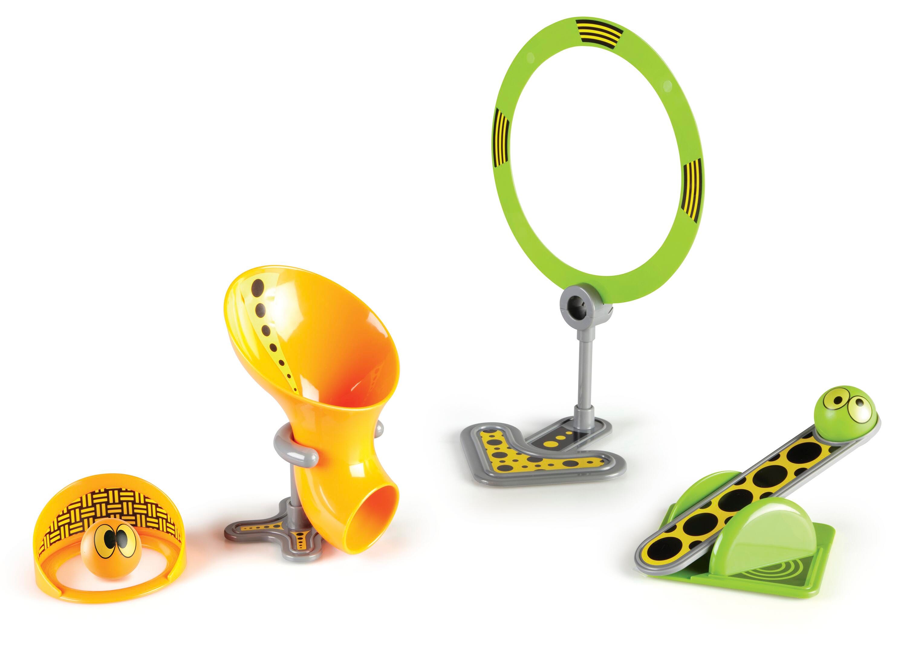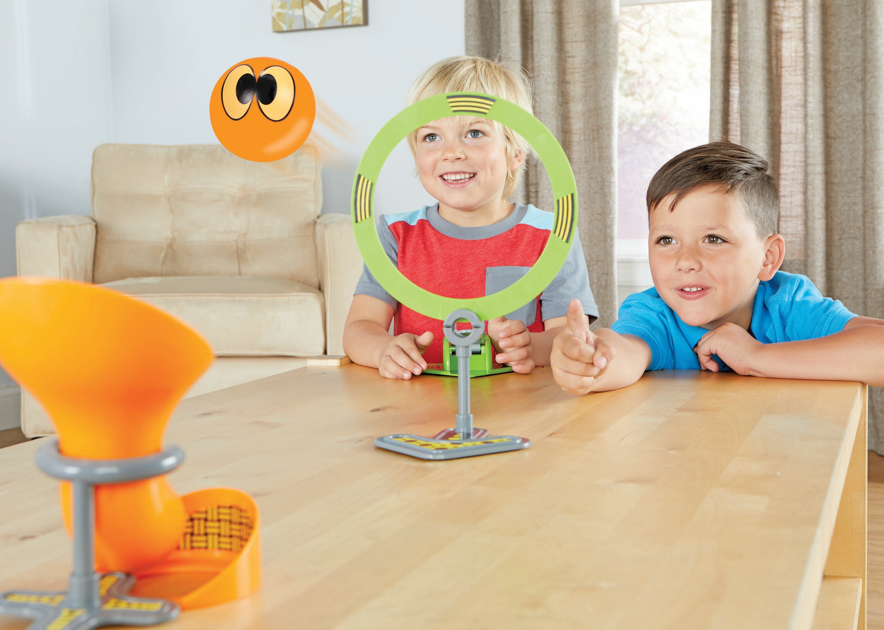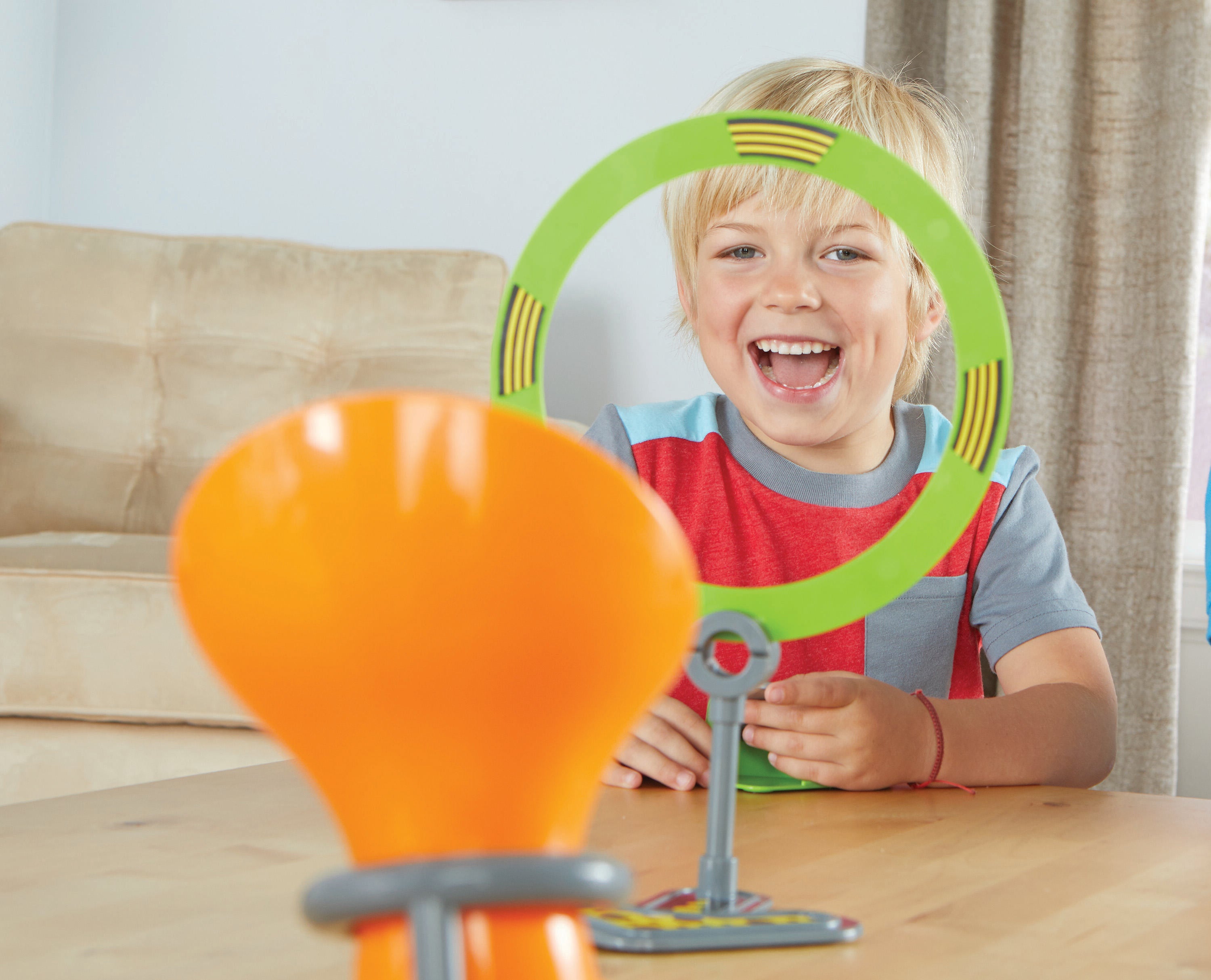 Encourage your early learners through a trial and error approach to problem solving through game-like challenges. The catapult set offers an early introduction to concepts such as angles, trajectories, and distances. This hands-on activity set challenges kids to build and complete high-flying obstacle courses designed around core STEM concepts. After setting up their catapults, kids send the launch balls flying off walls, over obstacles, and toward the set's included hoop target, funnel, or goal cup. Hoop target, when constructed, stands approximately 12 inches tall.