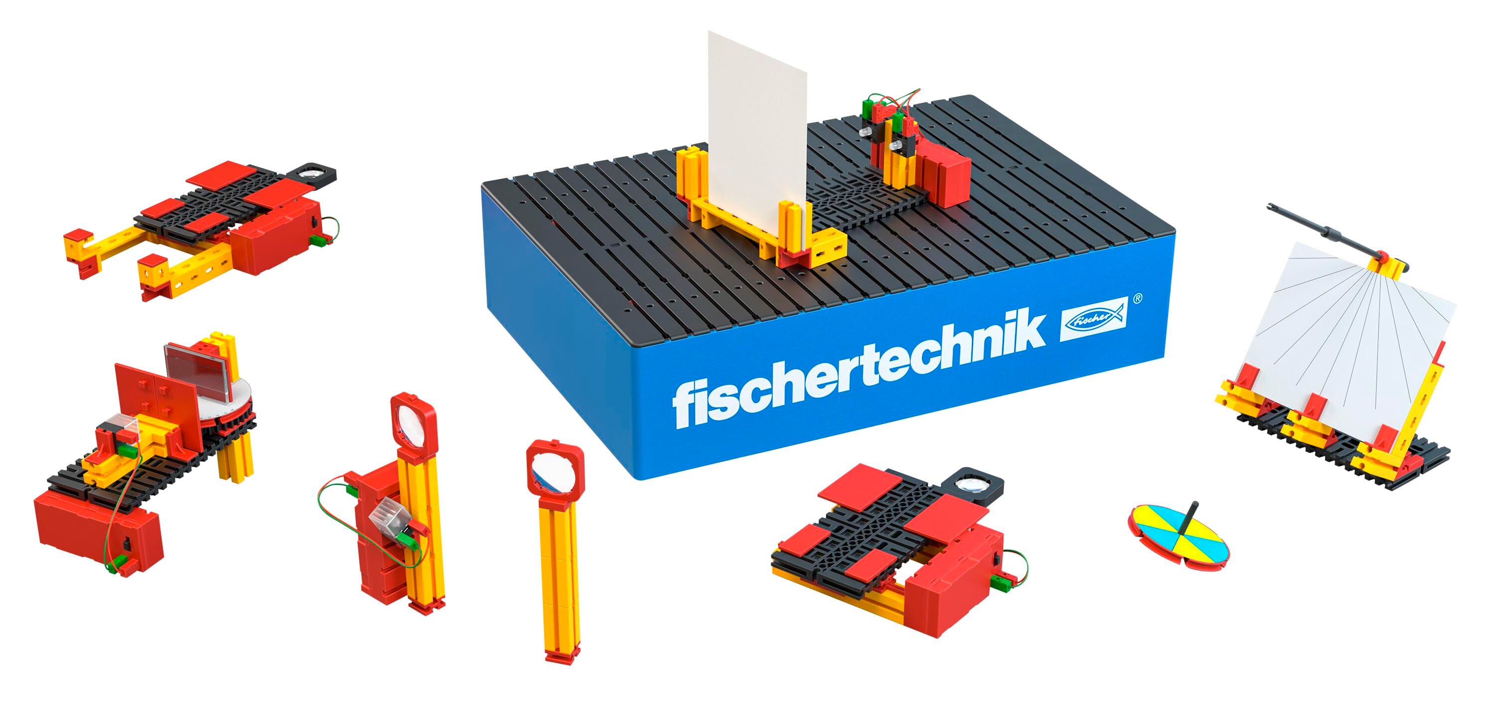 Learn about optical phenomena in the classroom and conduct experiments with light! Discover the concepts of umbra and penumbra, look at exciting objects under a magnifying glass, or tell the time using a sundial. These and other exciting topics are fun to learn about using the CLASS SET Optics. The building kit offers six models that are quick to build and easy to use in the classroom, alongside 6 exciting experiments. Set contains collection of 16 individual trays of parts (recommended: 15 student units, 1 teacher unit). Each tray of parts can be used by 1 to 2 students at a time, depending upon teacher preference. All 16 trays come packed in two sturdy fischertechnik “Box 1000” storage units, with baseplate lid.
