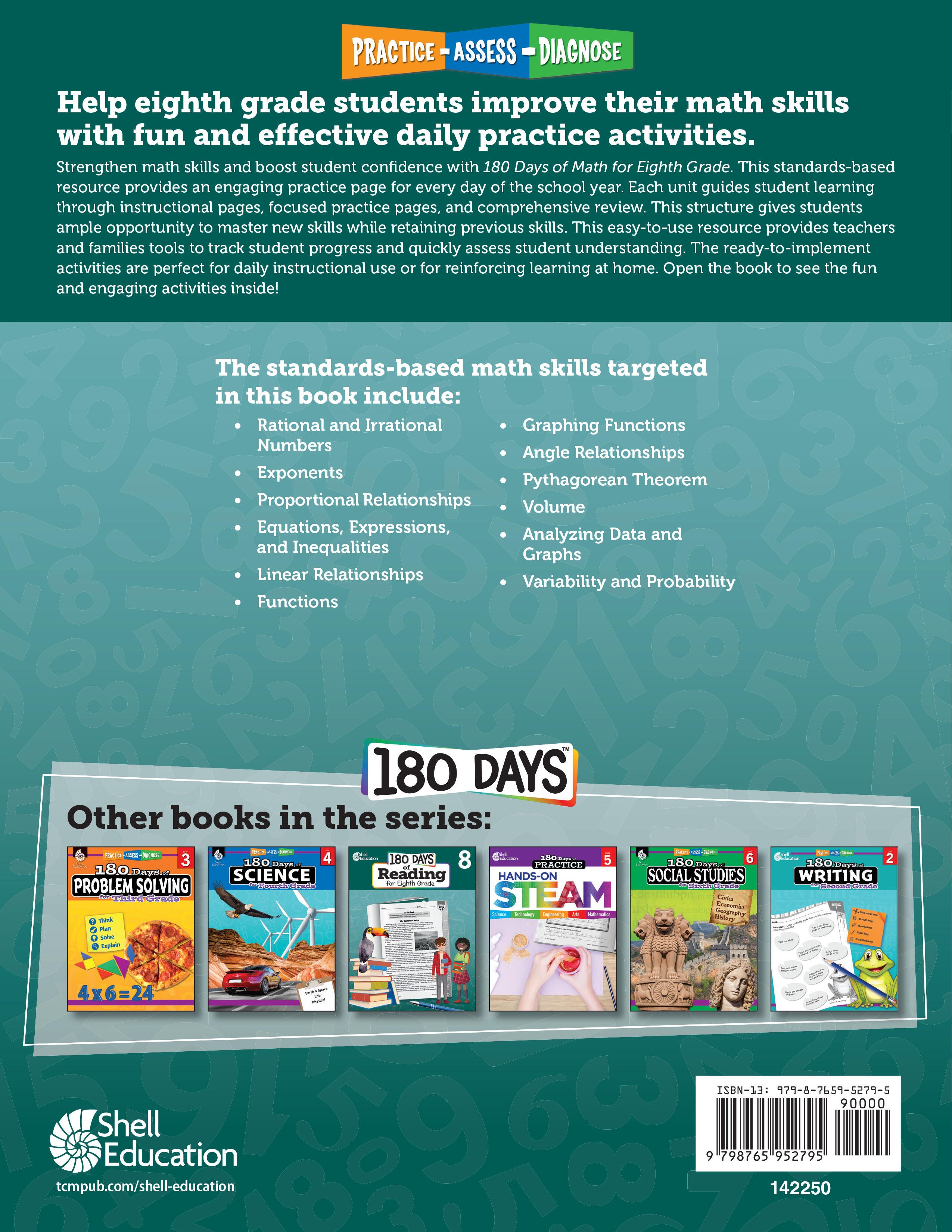 Build advanced mathematics skills with 180 Days of Math For Eighth Grade, a workbook of effective and meaningful daily practice activities.