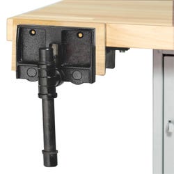 Diversified Woodcrafts 4 Station Workbench is designed for four students or makers to work together or on their own projects, equipped with four vises for additional project capabilities. Equipped with one cabinet on each side (two cabinets total) designed with adjustable shelves and double-faced locking doors, and 2 drawers on each side (four drawers total). Durable and reliable throughout their construction, doors are hung on durable five-knuckle hinges and are set to pull and lock with ease. Solid maple top measures 2-1/4 inches thick. Complete workbench measures 64 W x 54 D x 31-1/4 H inches. Some assembly required.Features