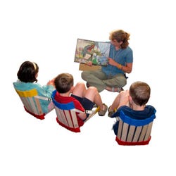 HowdaHug2 Chair with Adjustable Seat Strap is a smaller version of the HowdaHug, a multi-purpose roll-up seat designed to ""hug"" and comfort. HowdaHug2 provides support and freedom of movement. Ideal for providing a secure and grounded feeling, use it at home, in school, at the park, indoors, outdoors, etc. Rolls closed with carrying strap (attached) for easy portability. Made from Basswood slats with water-resistant 100% cotton canvas and reinforced bottom hinge. HowdaHug2 is environmentally safe. New adjustable straps provide ""give"" or a ""tighter hug"" for the children. It will fit up to 100 lbs. for taller, thinner children. Multi-colors may vary.Features