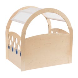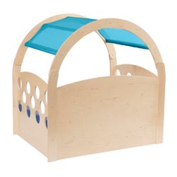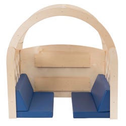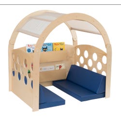 The Childcraft® Reading Nook provides a comfortable retreat for young learners to explore books and unwind. Designed for classrooms, libraries, and early learning spaces, this wooden reading nook features a sturdy frame with side cutouts for teacher visibility, two built-in bookshelves for easy access to reading materials, and a soft canopy for a calming atmosphere. The included blue seat cushions offer extra comfort, making this the perfect spot for independent reading or small group activities. This reading nook with seating comes with two interchangeable canopies. The full unit measures 49-1/2 W x 37 D x 50 H inches. Assembly required.Features