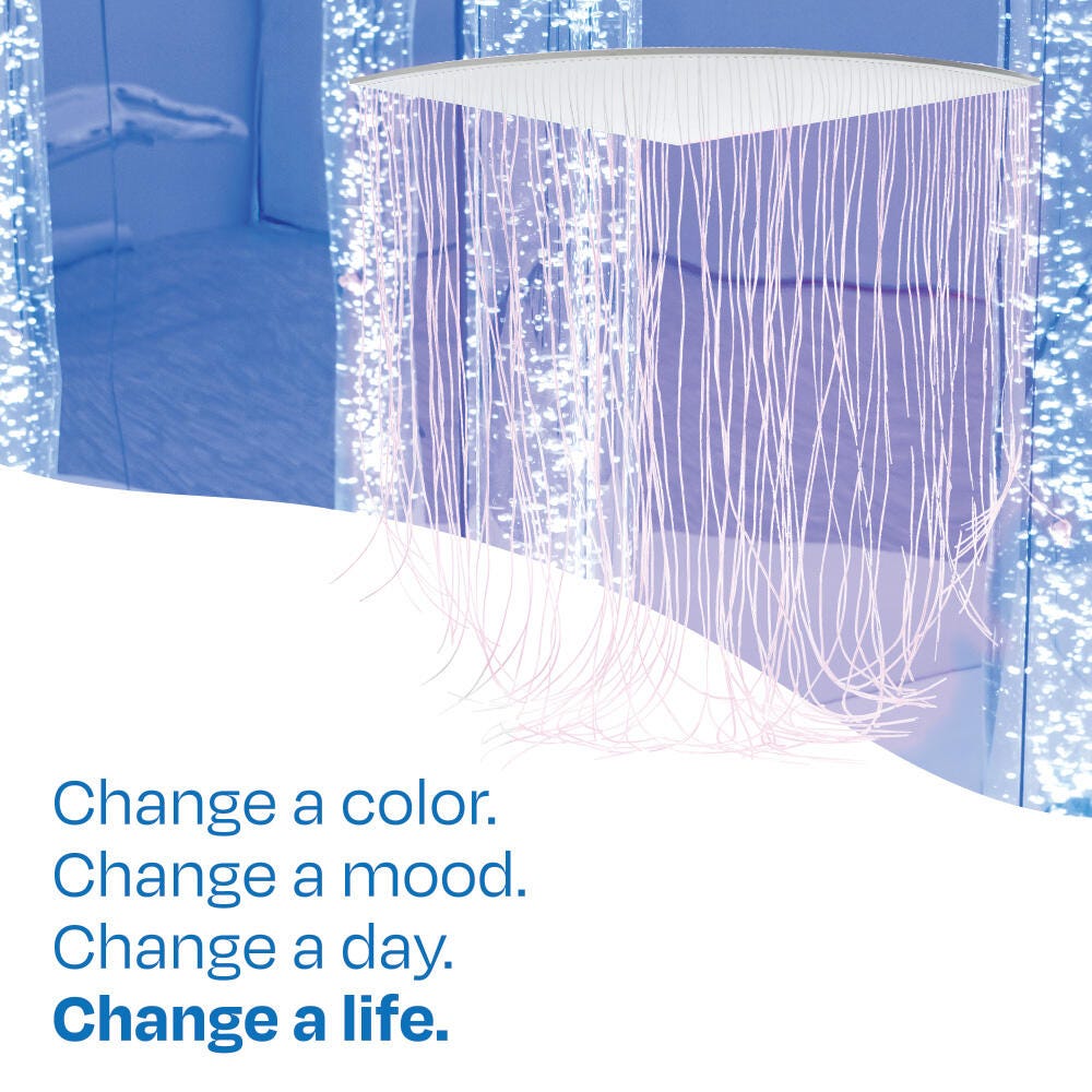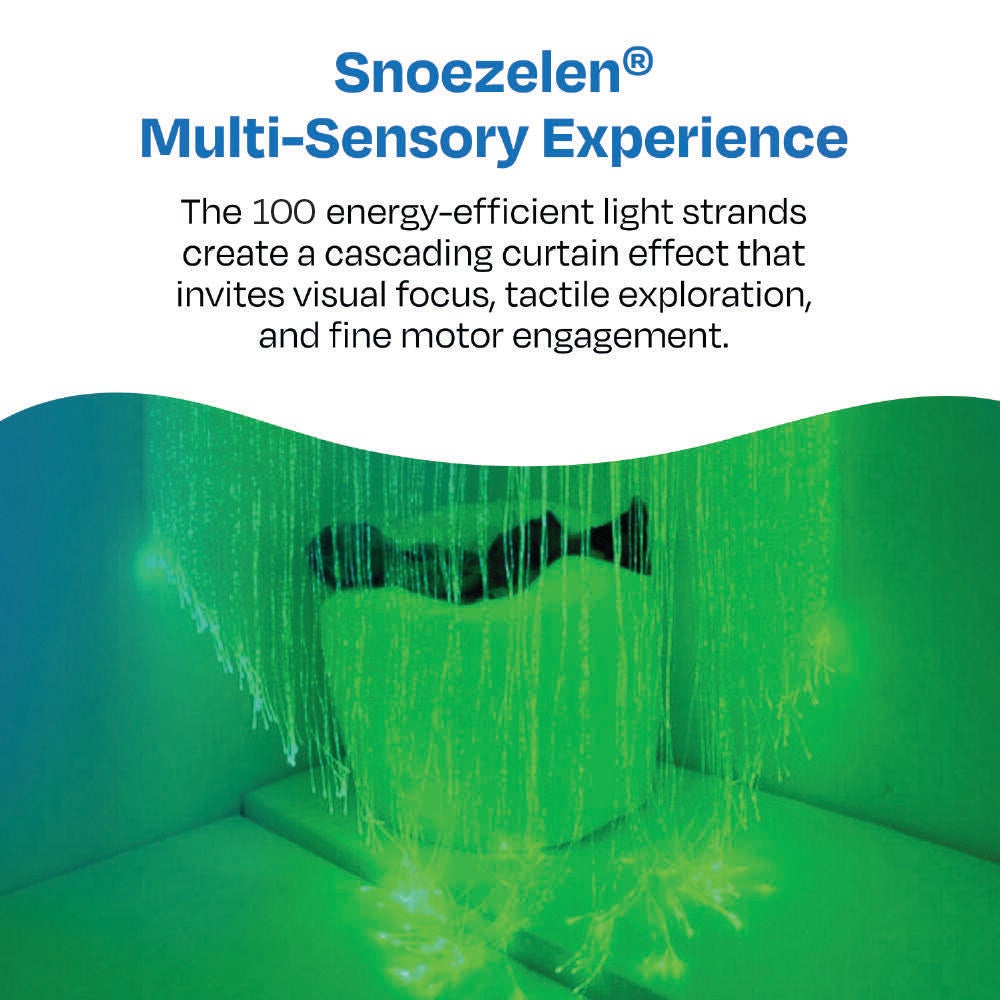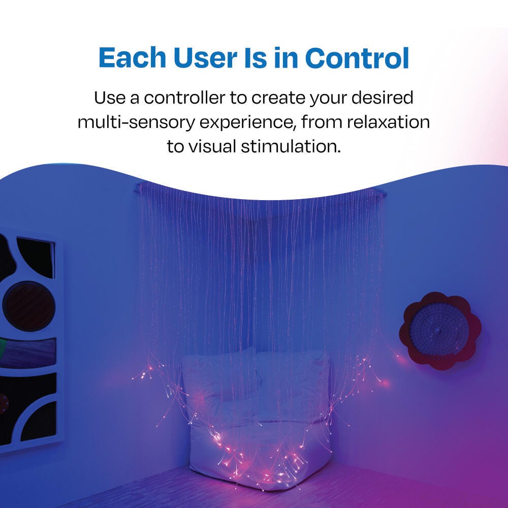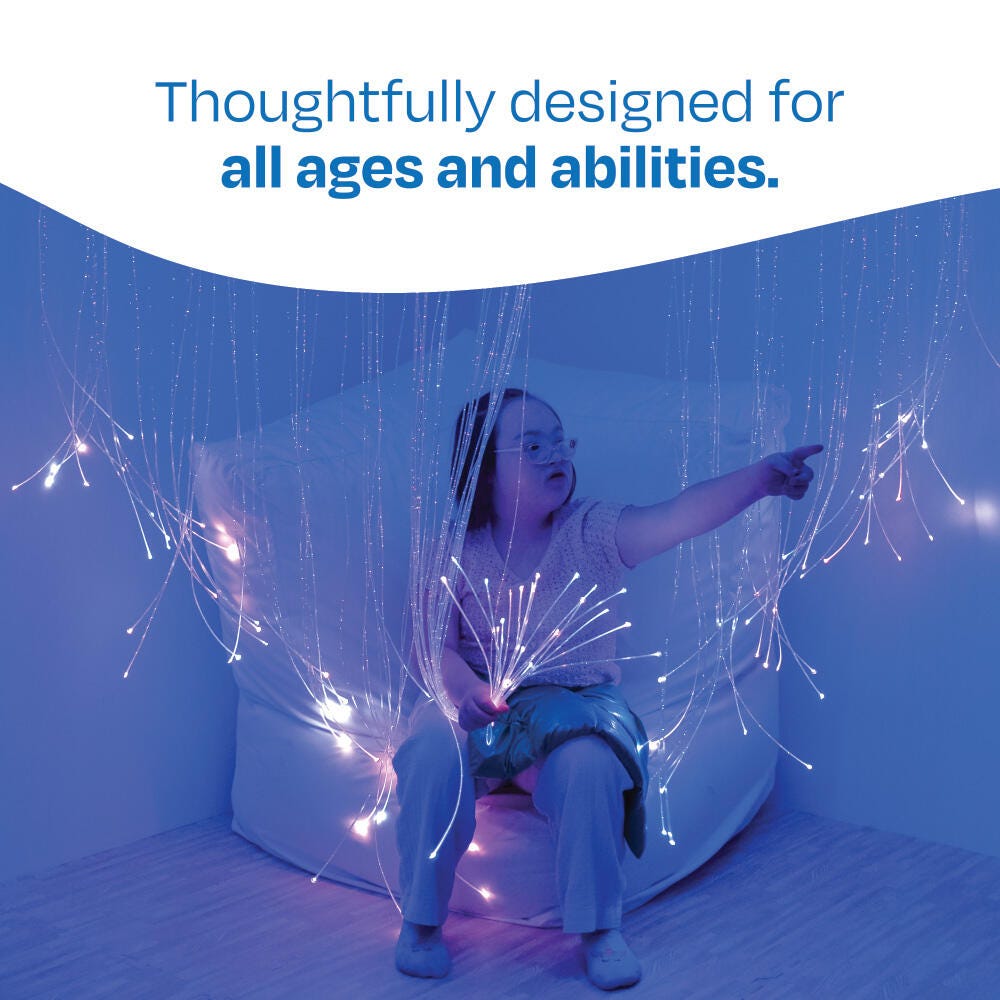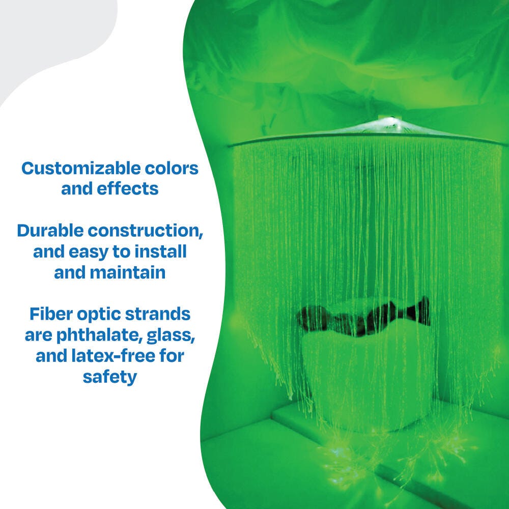 Use 100 optic strands as a beautiful curtain to section off a sensory corner. Must be mounted on a solid wall, curved to create a space in any corner.