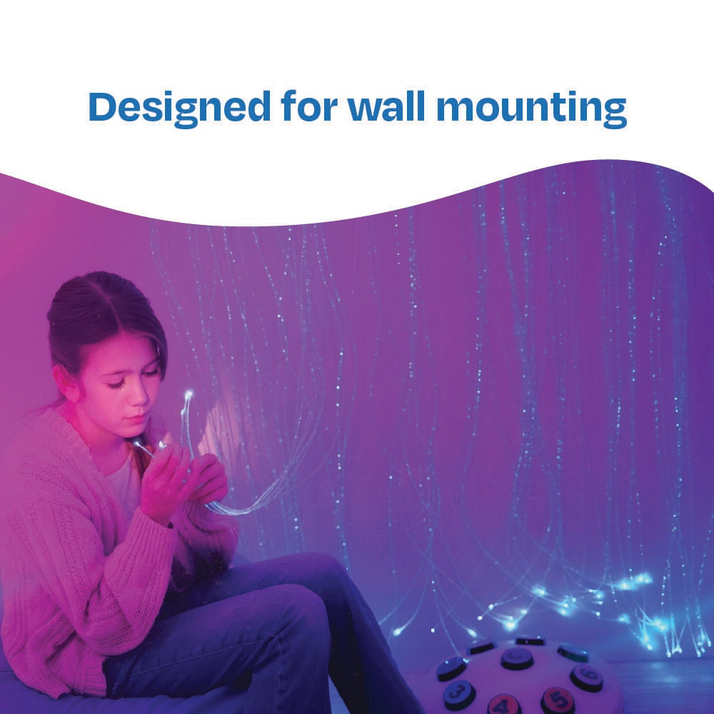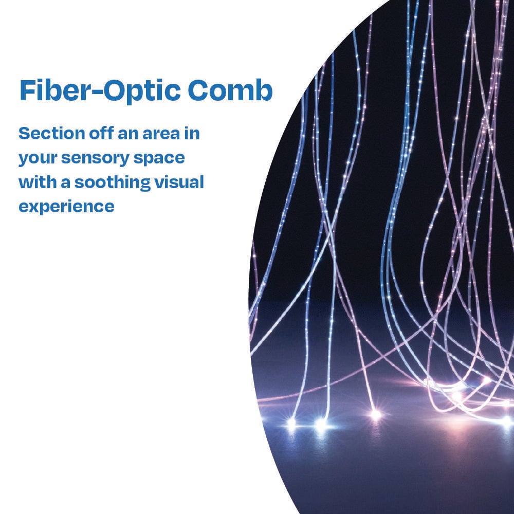 Description Enhance your sensory space, starting with this Snoezelen Fiber-Optic Comb. This Comb is designed to be wall-mounted, and can be used as a partition to separate different areas within your sensory space, care space, or playroom. Perfect for allowing those who need a moment of relief a separate space from those who need active engagement. Use this innovative device with your fiber-optic sprays to create spectacular, cascading waterfall effects! Includes 100 fiber optic strands, 80 L inches, but can be installed with fewer depending on the effect you prefer.