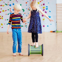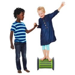 The Roller is a beautiful new conceptualization of a fundamentally challenging motor activity object. Leave it out, and you will see both children and grown-ups tempted to test their skills by stepping up and trying to set the Roller in motion. It offers a progressive motor skills challenge, from small kids just managing to keep their balance with the support of a friend or a hand rail, to older children pushing the boundaries of what they can do without falling off. Whether it is used for play or in therapy, the Roller will stimulate the primary proprioceptive sense, as well as the vestibular and tactile senses. Roller measures 13-3/4 L x 15-1/2 W x 11-5/8 H inches. Appropriate for ages 4 years and up. The Roller is safe to use, as the compression of its rubber tires naturally reduces the speed while making play virtually silent and protecting the ground surface from damage. The rubber tread provides a safe grip and offers additional tactile stimulation when rolling with bare feet. For younger children, this green version of the Roller contains 5.5 lb of sand, further reducing the speed and enabling even small children to master balancing and rolling. Weight Capacity: 220.5 pounds.Features