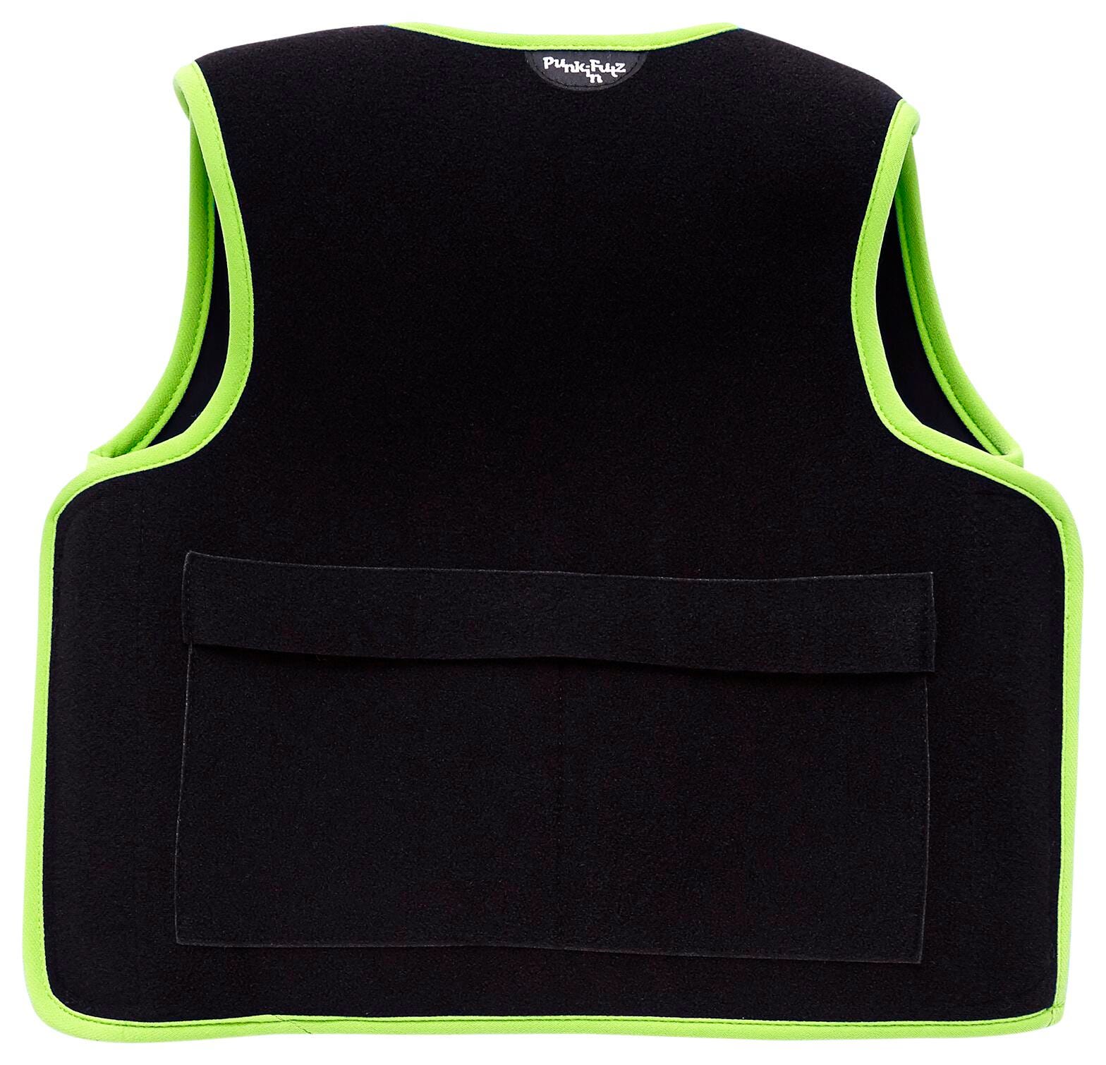 Description The revolutionary PunkinHug Compression Vest from PunkinFutz is the only fully breathable vest that provides a deep compression while also delivering endless creative play options! With a super soft loop exterior, the PunkinHug allows kids to express their creativity and style by attaching anything they want using Velcro! The pressure vest includes two interior and two exterior pockets for therapeutic weights or treasures (weights not included). Machine wash cold/gentle cycle, lay flat to dry.