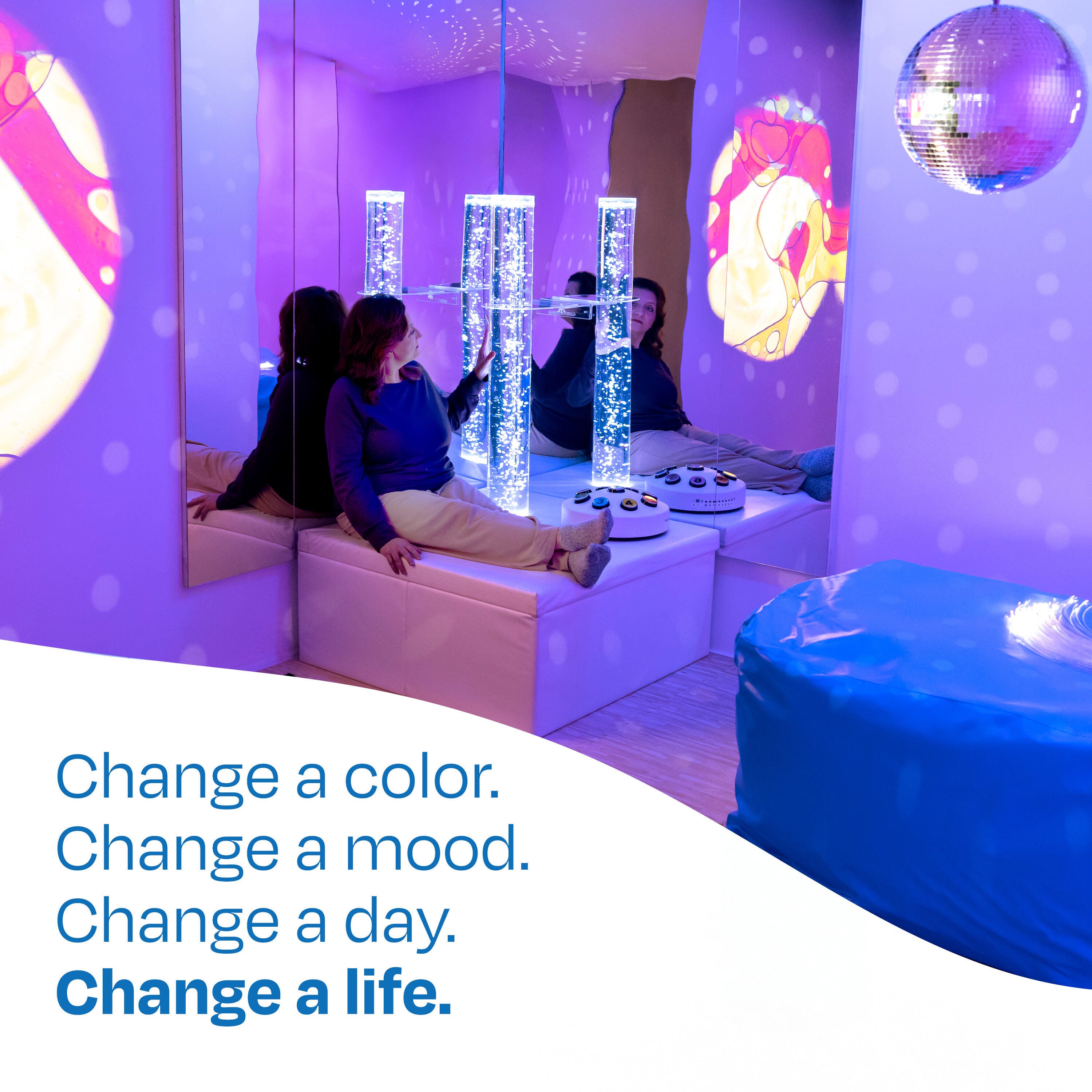 Designed for sensory spaces, therapy offices, or anywhere a private sensory calm is needed