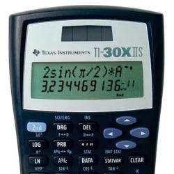 The TI-30X IIS Advanced Scientific Calculator handles two-variable statistics and three-separate five variable memories. Features new two-line display, equation recall/edit and will do fractions or fraction/decimal conversions. Calculator comes with a slide case, has a two-digit exponent line and the history retention stores previous entries. Excellent for basic trigonometric functions like sine, cosine, tangent, hyperbolics and their inverses. Solar and battery powered.Features