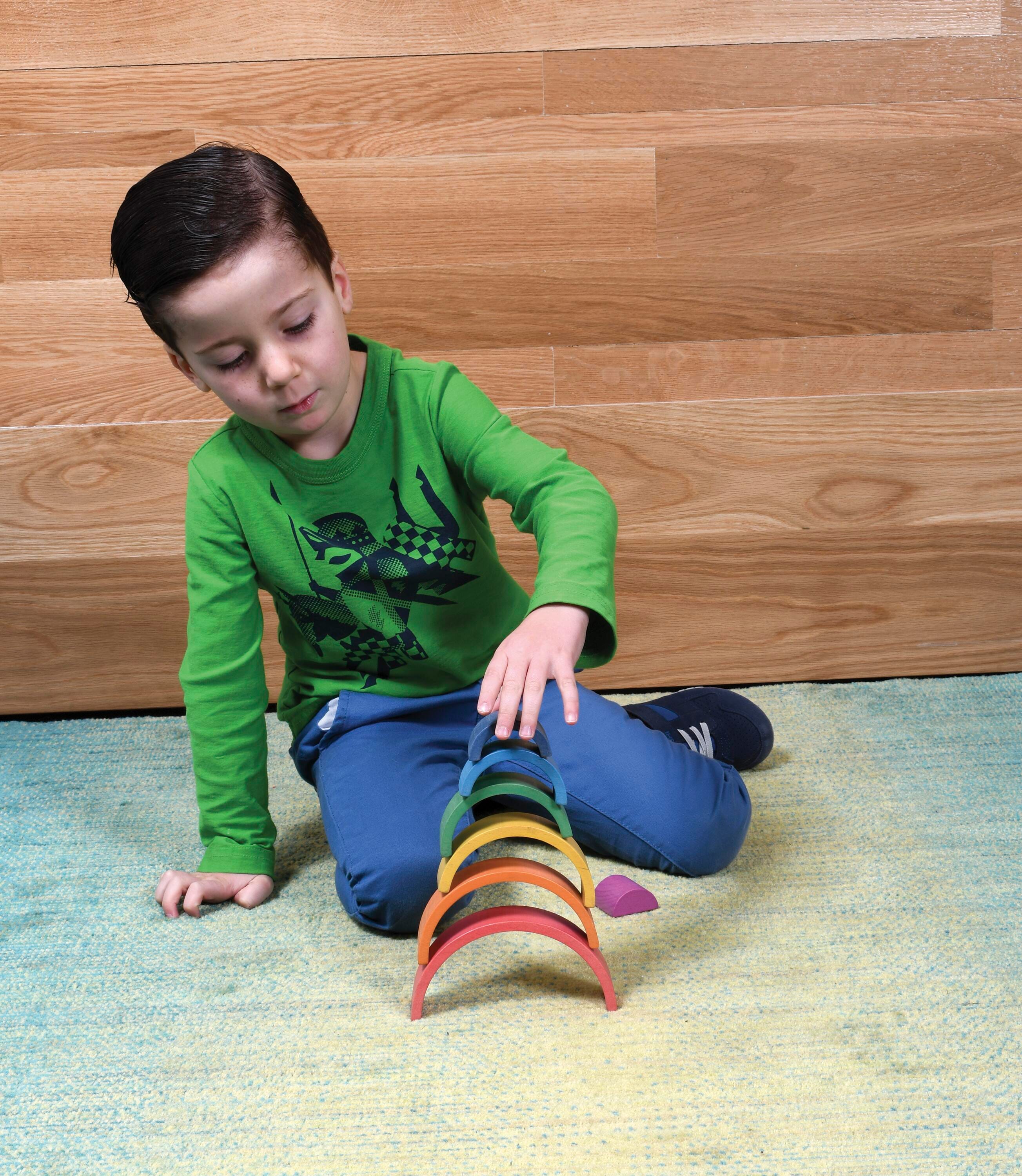 Beautifully stained in muted rainbow colors perfect for beginning color identification and association