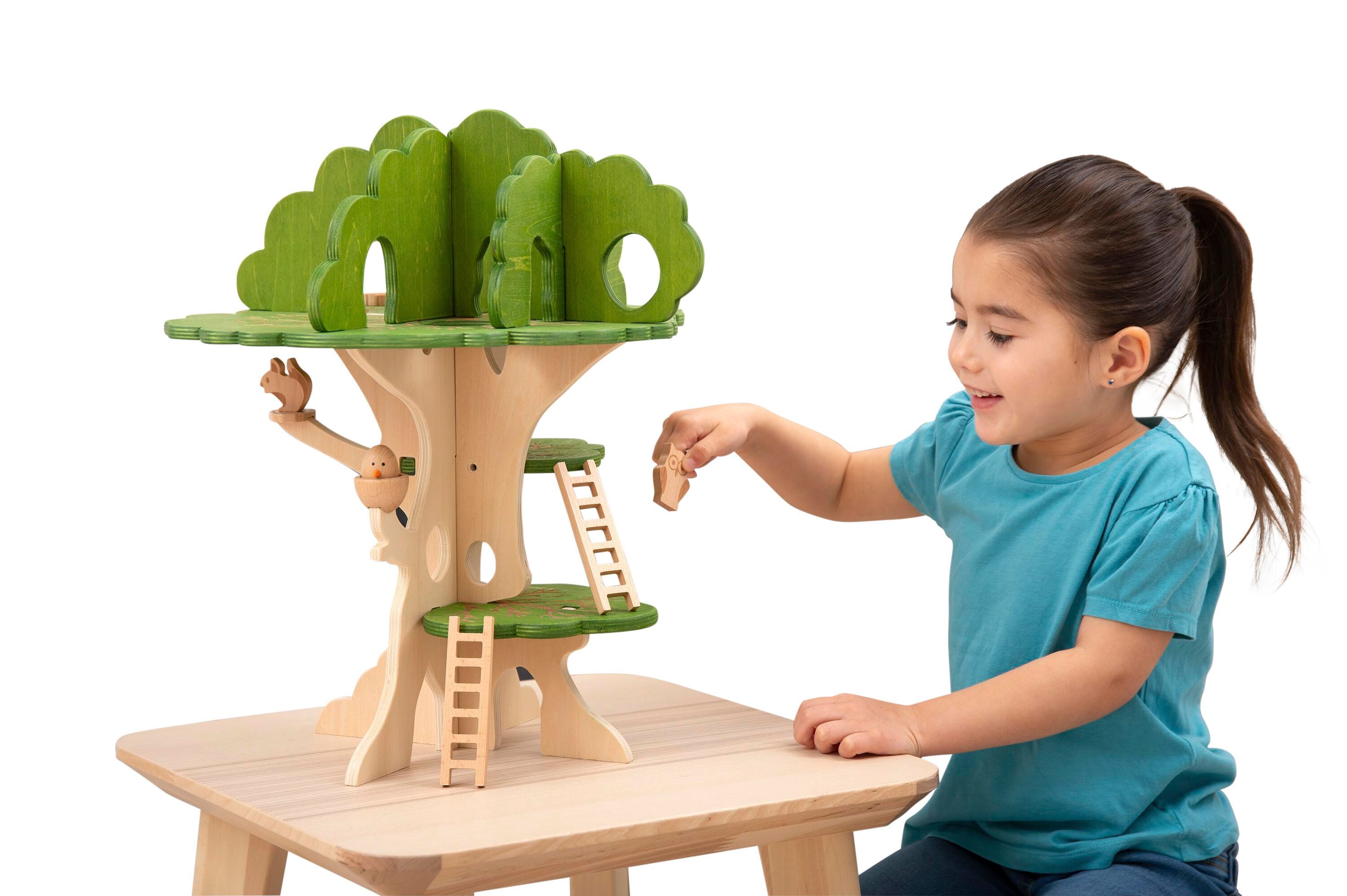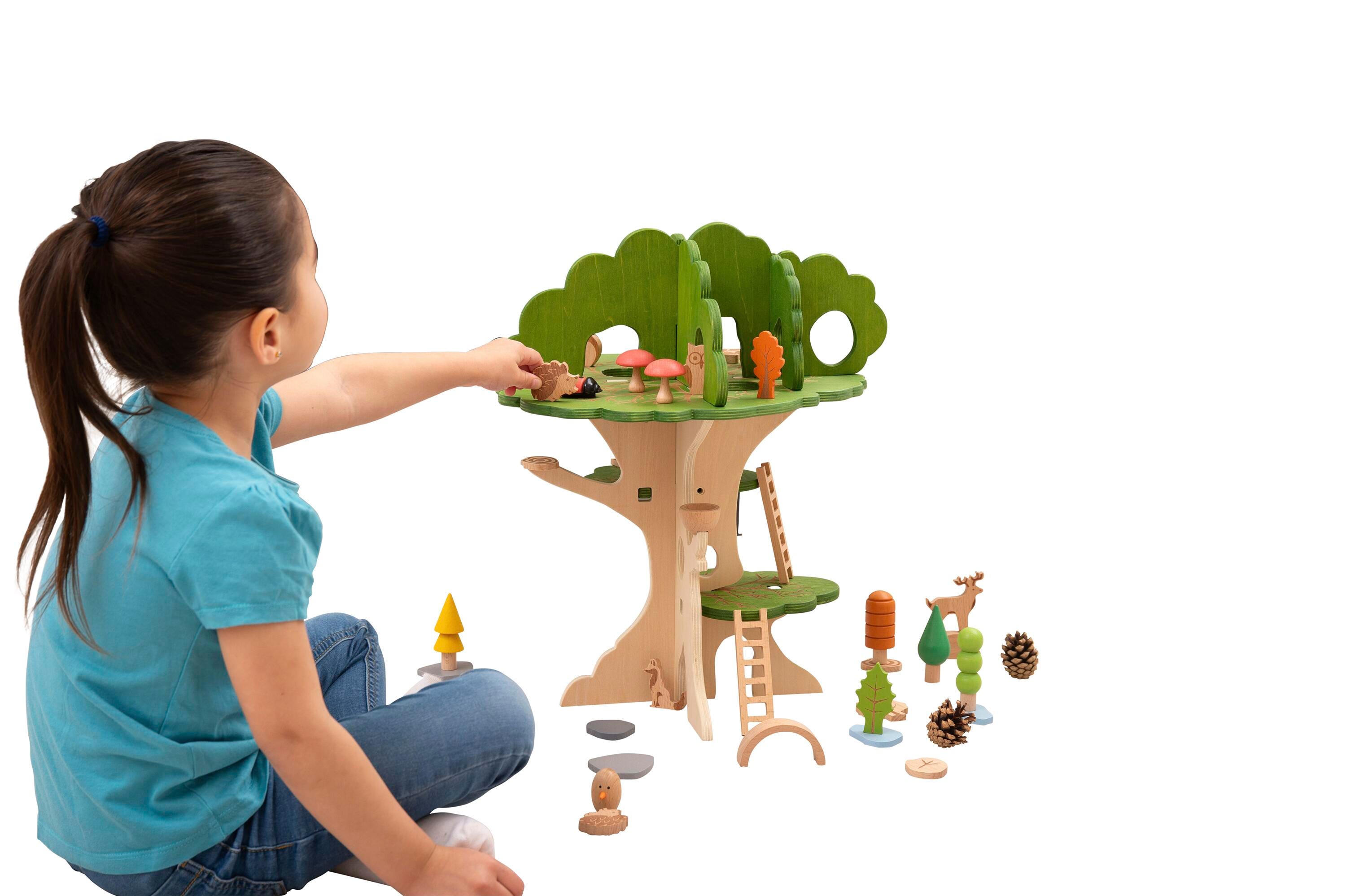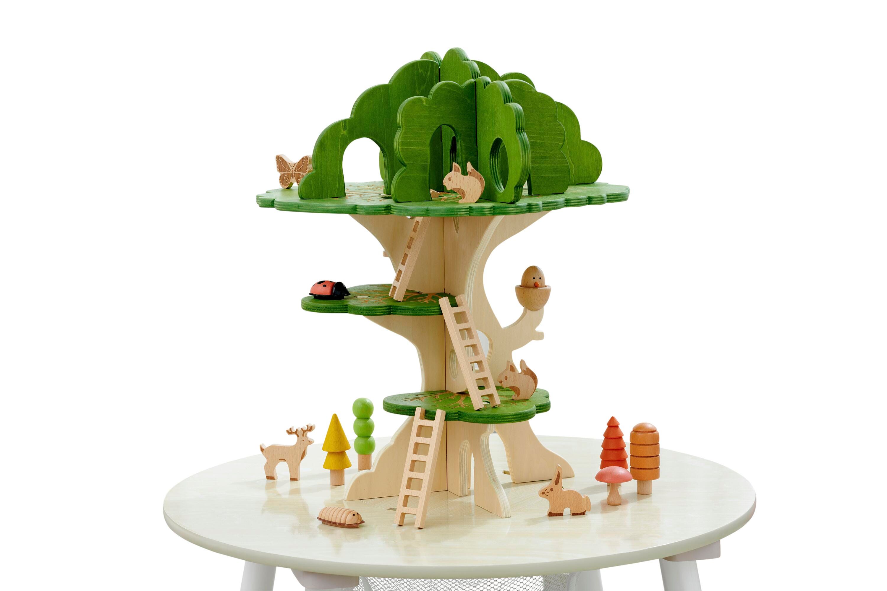 Encourage imaginative play and refine fine motor skills with the wooden Woodland Trail Treehouse Set by tickit. Perfect for childcare spaces that need an easy-to-assemble addition to roleplay accessories.