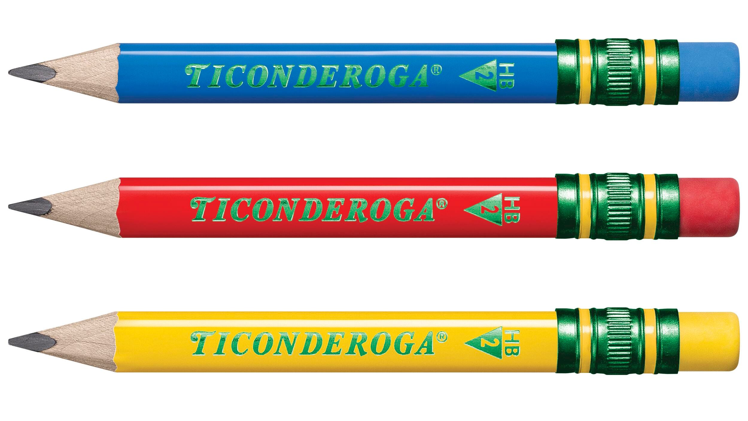The My First Short Triangular Pencils from Ticonderoga are the perfect pencil for beginners! The 4-1/2 inch length provides better control and promotes a more natural grip for small hands. The large 13/32-inch diameter helps to reduce writing fatigue, and the triangular shape promotes the correct 3-finger grip. Premium wood harvested from responsibly managed sources provides smooth, even sharpening with minimal breakage. A convenient latex-free eraser tip cleanly removes stray marks and mistakes without damaging the page. This pack contains 12 pencils, with 4 each in blue, red, and yellow.