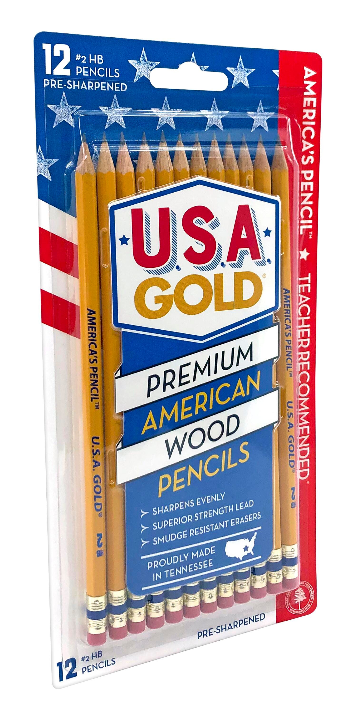 • USA Gold Woodcase Pencils, No 2, Pre-Sharpened, Pack of 12