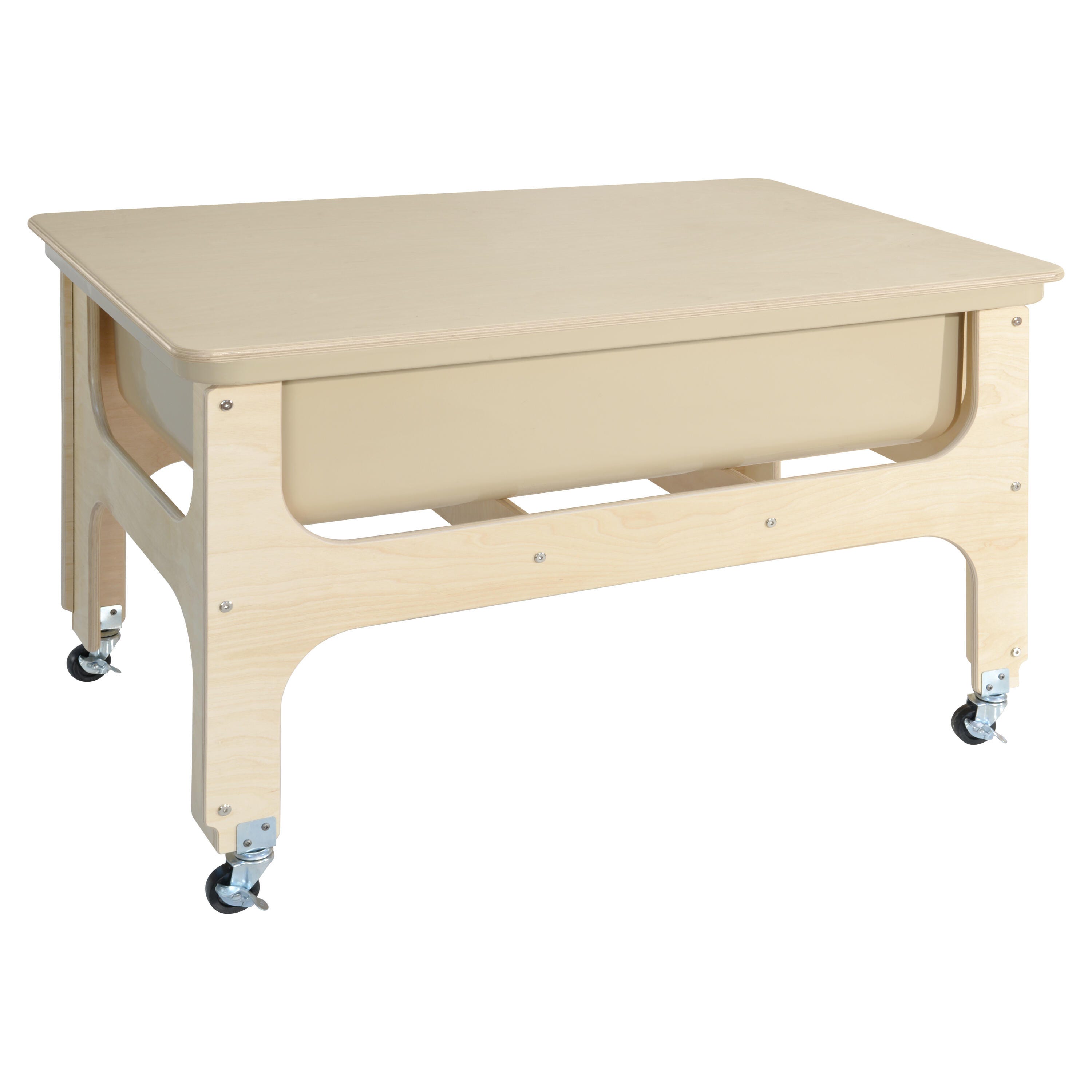 The perfect sensory play solution that allows children to get elbow-deep in fun and STEAM learning. And, when not in use, simply cover the tub with the provided lid and use this table as a work surface. Made with fully-rounded corners and edges for maximum safety. Easy drainage and a no-spill gutter wall around the edge of the tub keep messes contained. Frame assembly required. Avoid direct sunlight. For indoor use only. Measures 41 W x 27 D x 25 H inches.Features